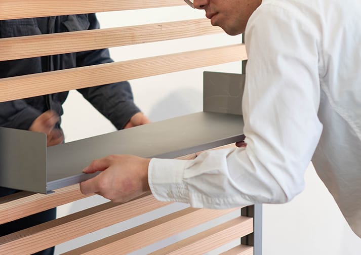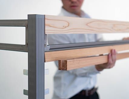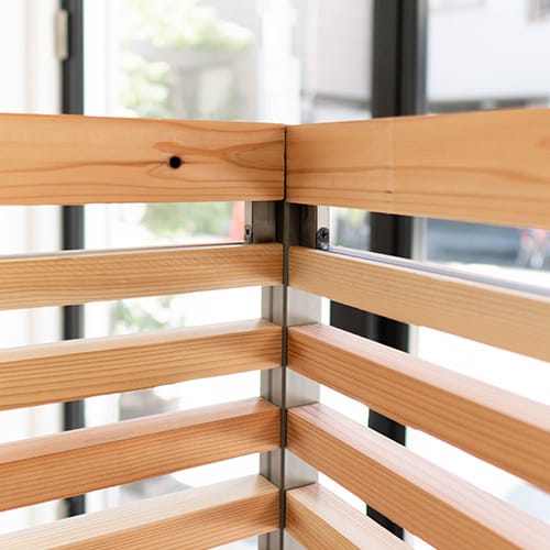 圧迫感のないルーバーで優しく空間を間仕切ります。組立はドライバー1本で可能。