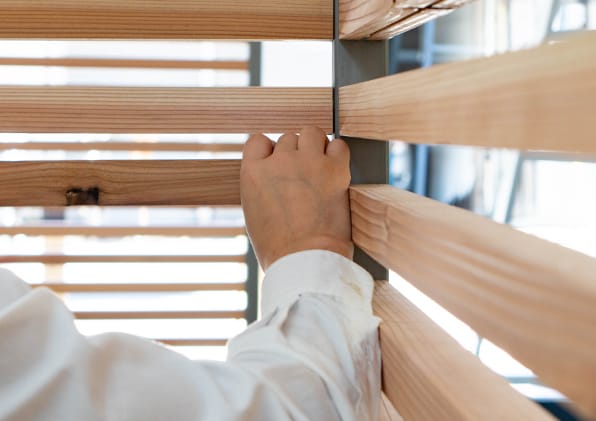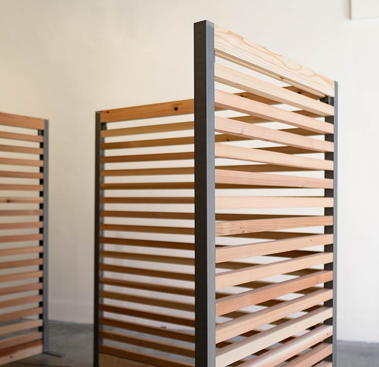 木の香りで包み、優しい空間を作るルーバー(パーテーション)家具