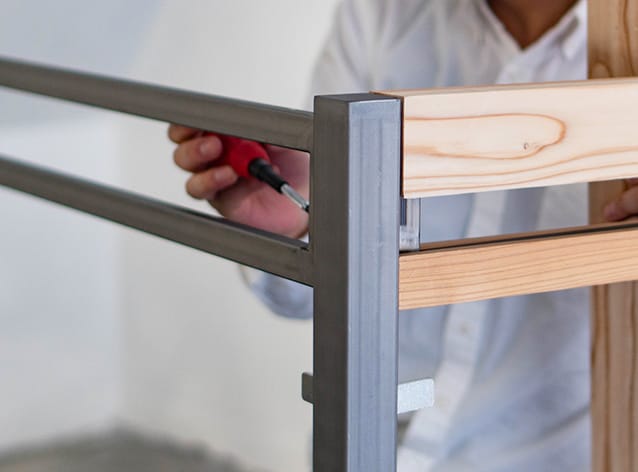 スチールの剛性と木材の温かみを併せ持ったハイブリッド家具。