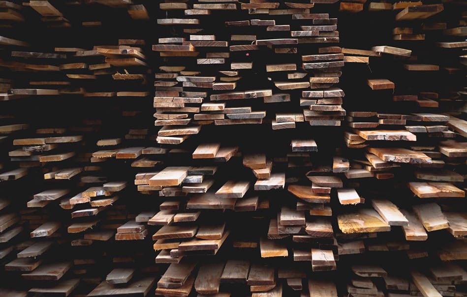 通常の乾燥法は原木を山から切り倒し、その原木を製材し、板状にしたものを乾燥します。